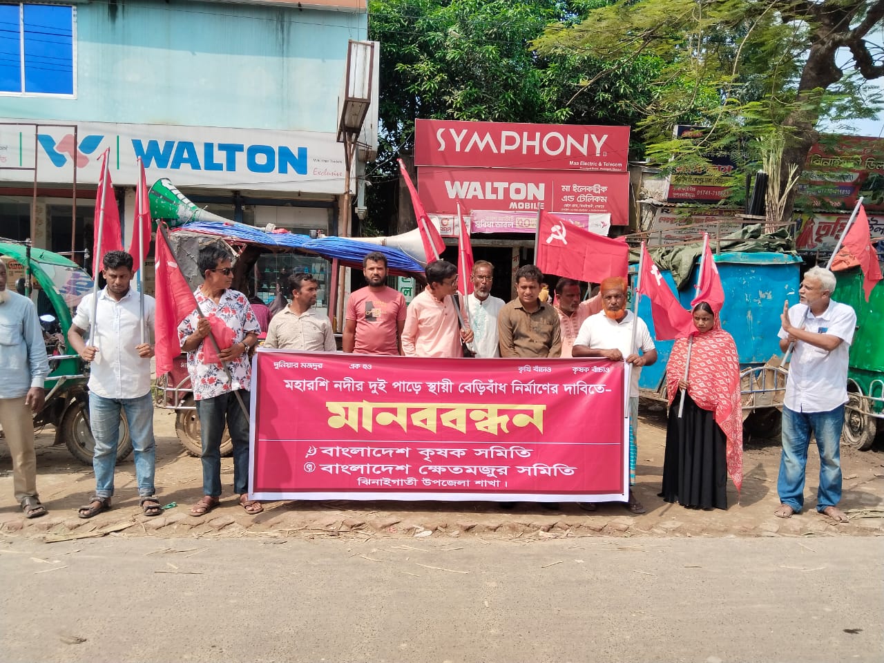 মোহাম্মদ দুদু মল্লিক,শেরপুর প্রতিনিধি: শেরপুরের ঝিনাইগাতীতে মহারশি নদীর দুই পাড়ে স্থায়ী বেড়িবাঁধ নির্মাণের দাবিতে মানববন্ধন করেছে বাংলাদেশ কৃষক সমিতি ও বাংলাদেশ ক্ষেতমজুর সমিতি উপজেলা শাখা।