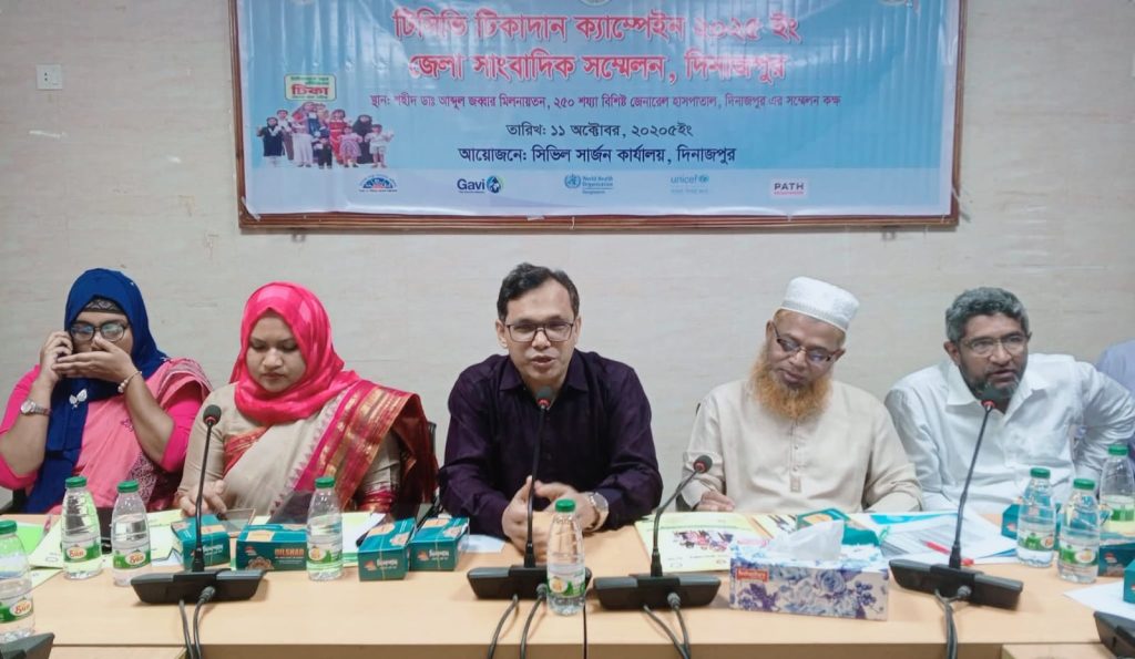 দিনাজপুরে টিসিভি টিকাদান ক্যাম্পেইন উপলক্ষ্যে সিভিল সার্জন কার্যালয় এর আয়োজনে-১১ অক্টোবর-২০২৫ শনিবার সকাল ১০টায়,দিনাজপুর সদর হাসপাতালের সম্মেলন কক্ষে দিনাজপুর জেলা সংবাদ কর্মীদের নিয়ে সংবাদ সম্মেলনে বক্তব্য রাখেন জেলা সিভিল সার্জন ডাঃ মোঃ আসিফ ফেরদৌস।