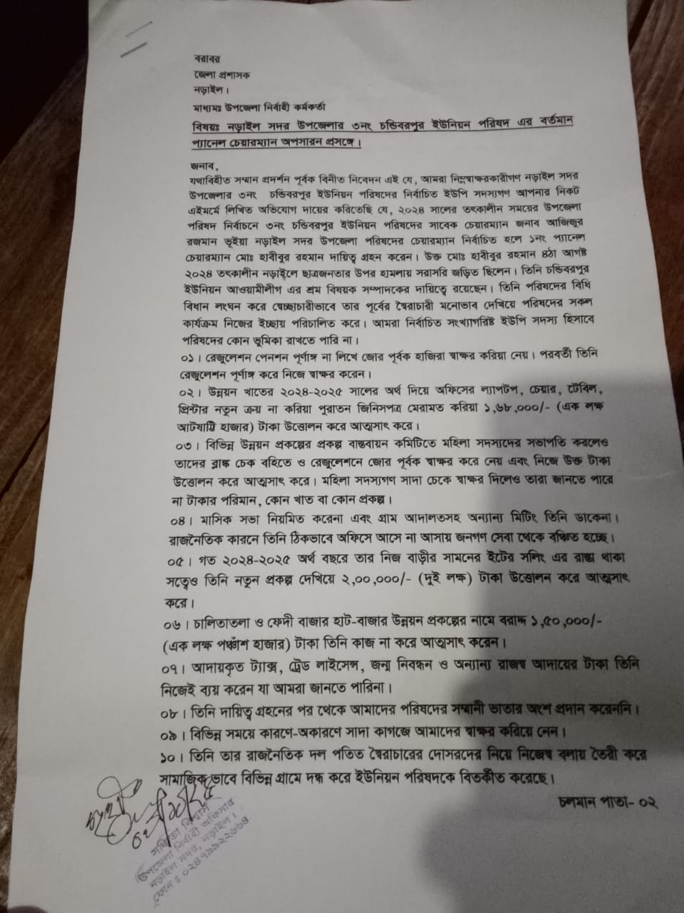 নড়াইলে ইউপি চেয়ারম্যানের বিরুদ্ধে অনিয়মের অভিযোগ