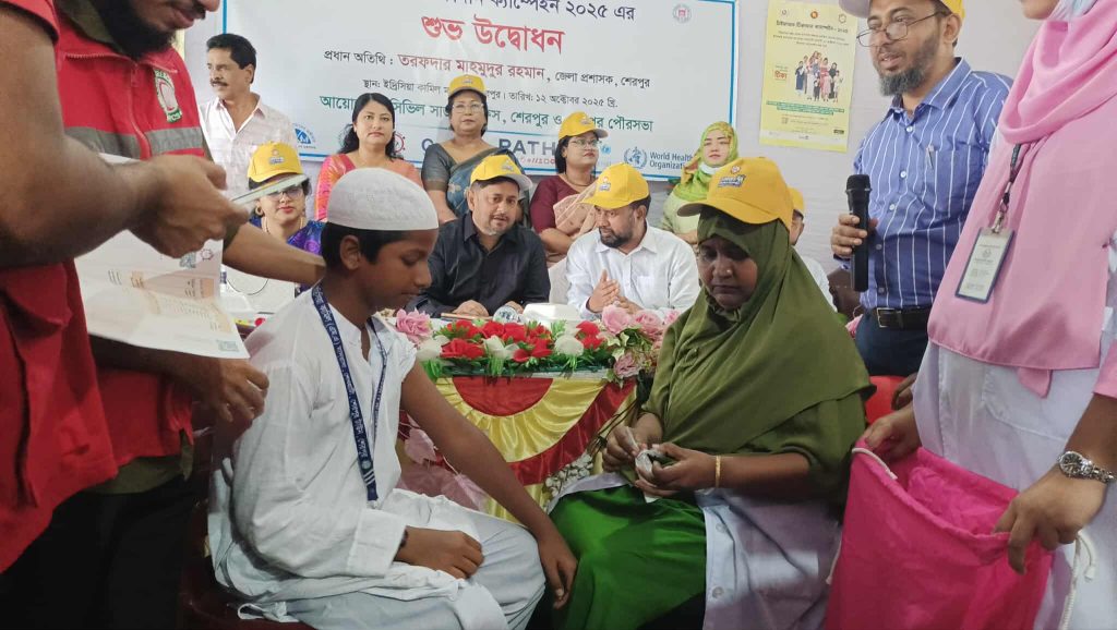 শেরপুরে আনুষ্ঠানিকভাবে টাইফয়েড টিকাদান কর্মসূচির উদ্বোধন করা হয়েছে।