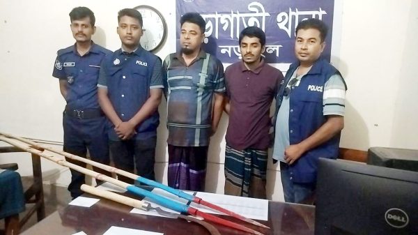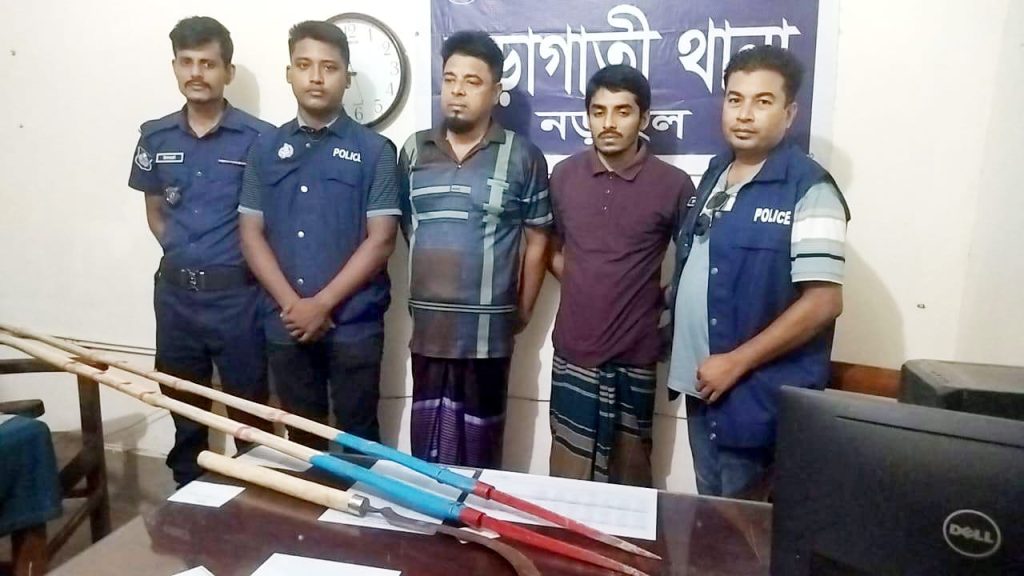 নড়াগাতী থানার ওসি আশিকুর রহমানসহ অভিযানে থাকা পুলিশ সদস্যরা তাদেরকে দ্রুত গ্রেফতার করতে সক্ষম হন। এছাড়া ঘটনাস্থল থেকে বাঁশের হাতলযুক্ত দুইটি লোহার সড়কি এবং কাঠের হাতলযুক্ত একটি ধারালো হাসুয়া উদ্ধার করেছে পুলিশ। অভিযোগ রয়েছে, এই সড়কি ও ধারালো অস্ত্র দিয়ে ভাই এবং ভাতিজাকে কুপিয়ে গুরুতর জখম করেছে লাবু ও তার ছেলে।