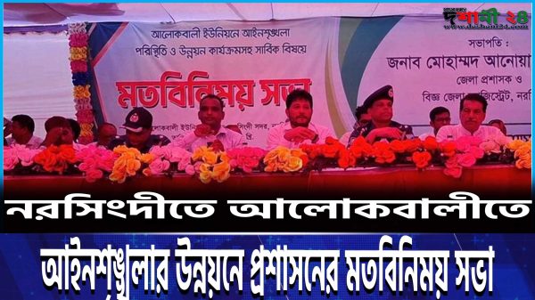 আধিপত্য বিস্তার নিয়ে নরসিংদীর চরাঞ্চলের আলোকবালীতে দফায় দফায় দুই পক্ষের মধ্যে চলা সংঘর্ষে তিনজন নিহতের পর আইনশৃঙ্খলার উন্নয়নে মতবিনিময় সভা করেছে জেলা প্রশাসন।