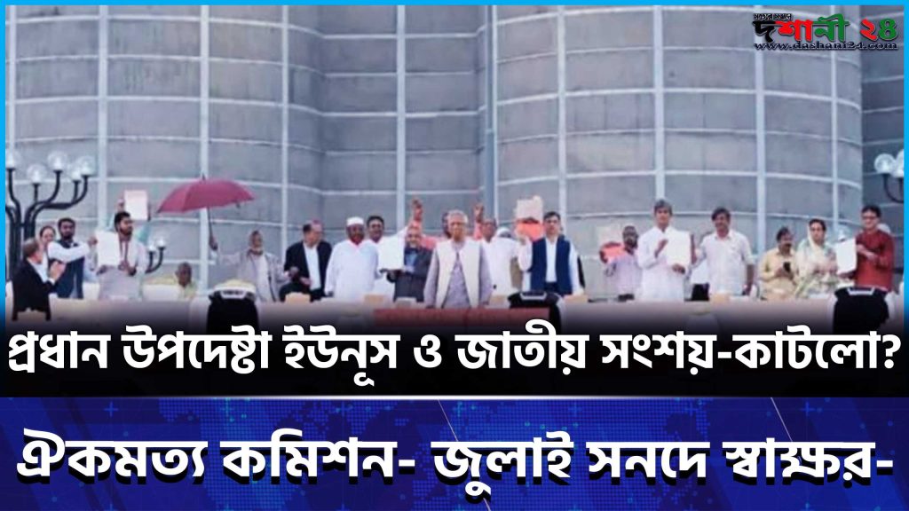 প্রধান উপদেষ্টা মুহাম্মদ ইউনূস ও জাতীয় ঐকমত্য কমিশন-জুলাই সনদে স্বাক্ষর- সংশয়-কাটলো?