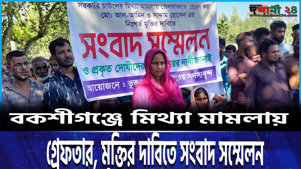জামালপুরের বকশীগঞ্জে সরকারি চাল চুরির মামলায় জেল হাজতে থাকা দুই ব্যক্তির মুক্তির দাবি ও প্রকৃত দোষীদের গ্রেফতারের দাবিতে সংবাদ সম্মেলন অনুষ্ঠিত হয়েছে।