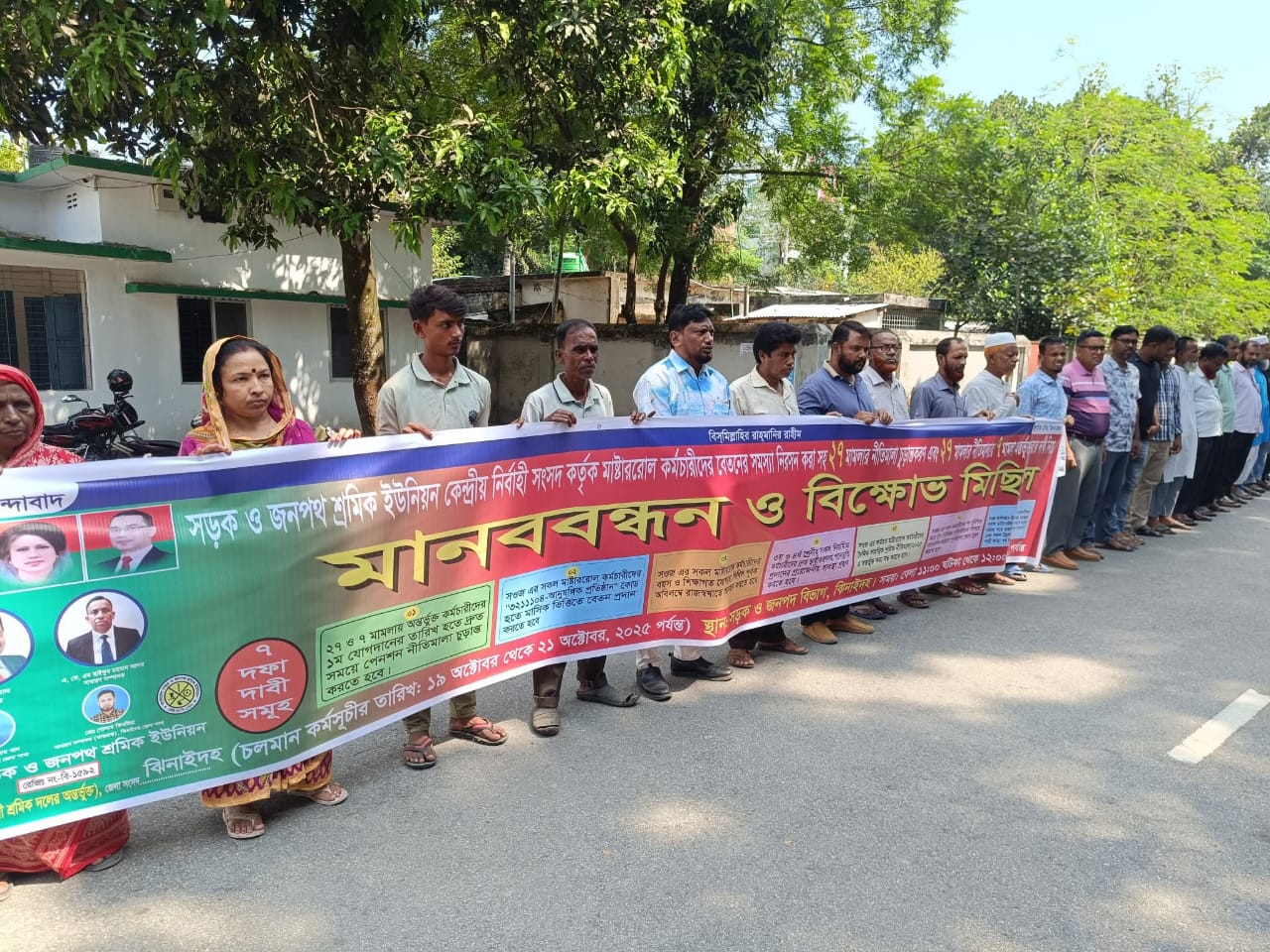 ঝিনাইদহে ৭ দফা দাবীতে সড়ক ও জনপথ বিভাগের কর্মচারীদের মানববন্ধন-বিক্ষোভ