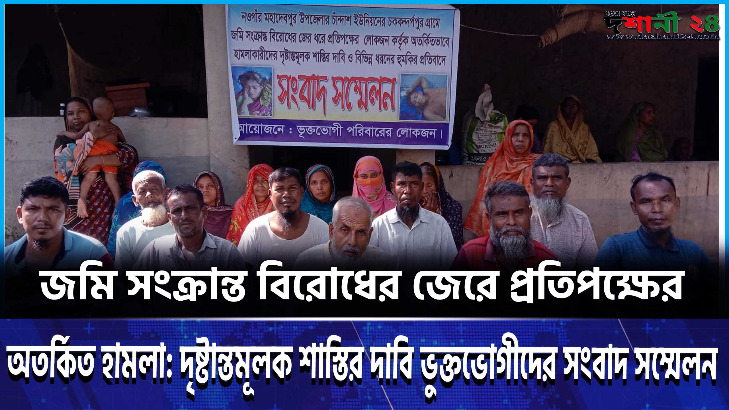 সংবাদ সম্মেলনে মোহাম্মদ আলীর সভাপতিত্বে বক্তব্য রাখেন শহিদুল ইসলাম প্রামানিক, আব্দুস সালাম, আবুল কালাম, ডেইজি, শামীমা আক্তার শিখাসহ একাধিক ভুক্তভোগী। তারা বলেন, “দীর্ঘদিন ধরে আমরা যে জমি ভোগদখল করে আসছি, সেই জমি অবৈধভাবে দখলের চেষ্টা চালাচ্ছে প্রতিপক্ষ। তারা জাল দলিল দেখিয়ে আমাদের সম্পত্তি দখল করতে চায়। বাধা দিলে আমাদের ওপর হামলা করে।”