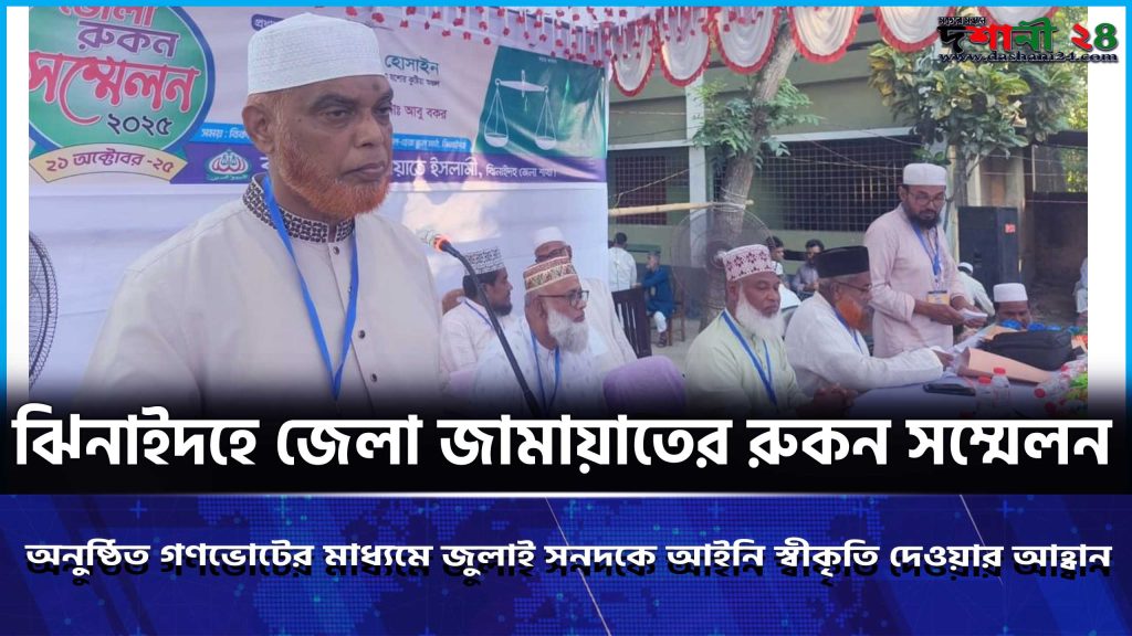 ঝিনাইদহে জেলা জামায়াতের রুকন সম্মেলন অনুষ্ঠিত — গণভোটের মাধ্যমে জুলাই সনদকে আইনি স্বীকৃতি দেওয়ার আহ্বান