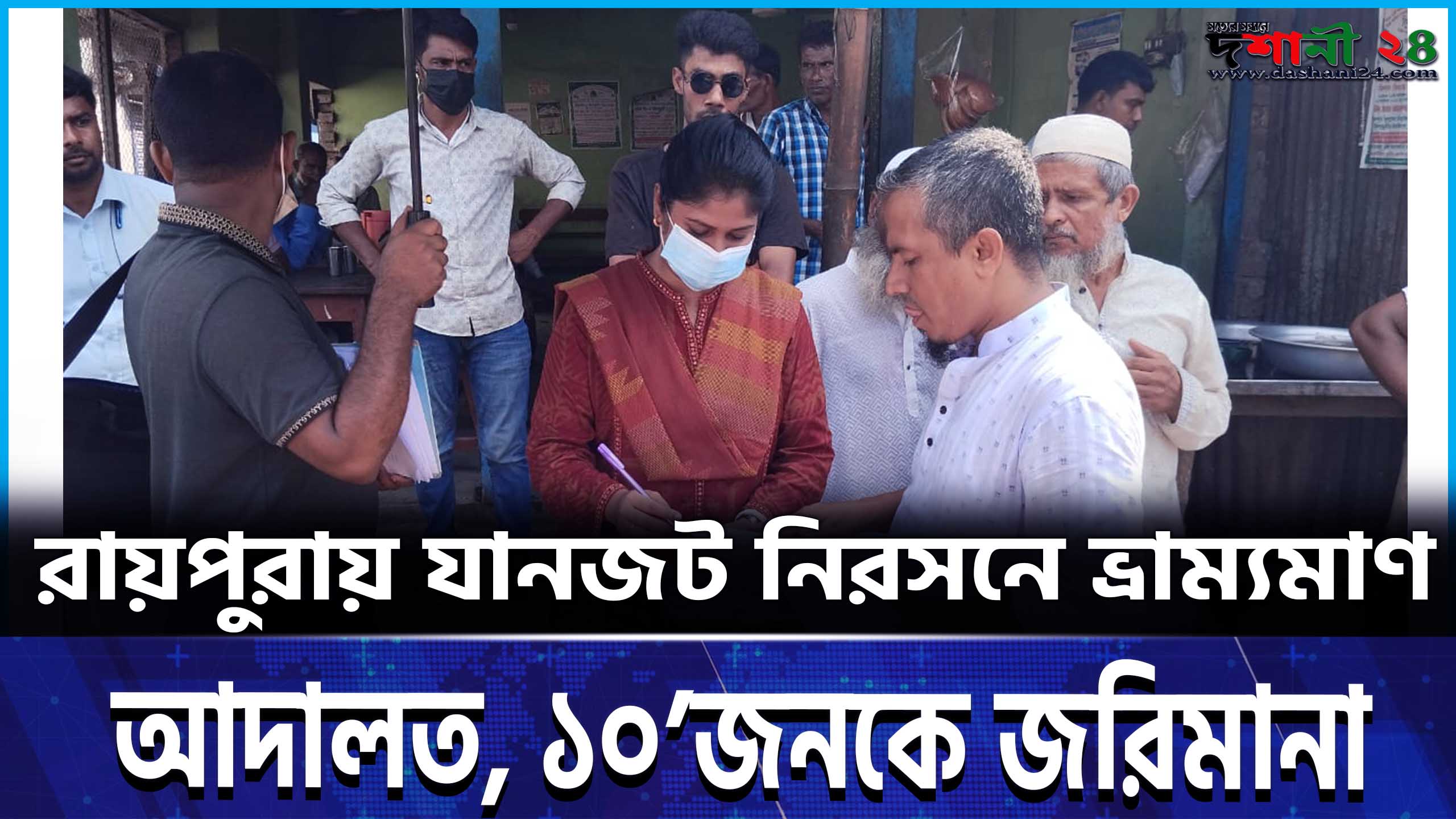 নরসিংদীর রায়পুরা পৌর এলাকার রেলগেইটে যানজট নিরসনে ভ্রাম্যমাণ আদালতে বিশেষ অভিযান পরিচালনা করেছে উপজেলা প্রশাসন।