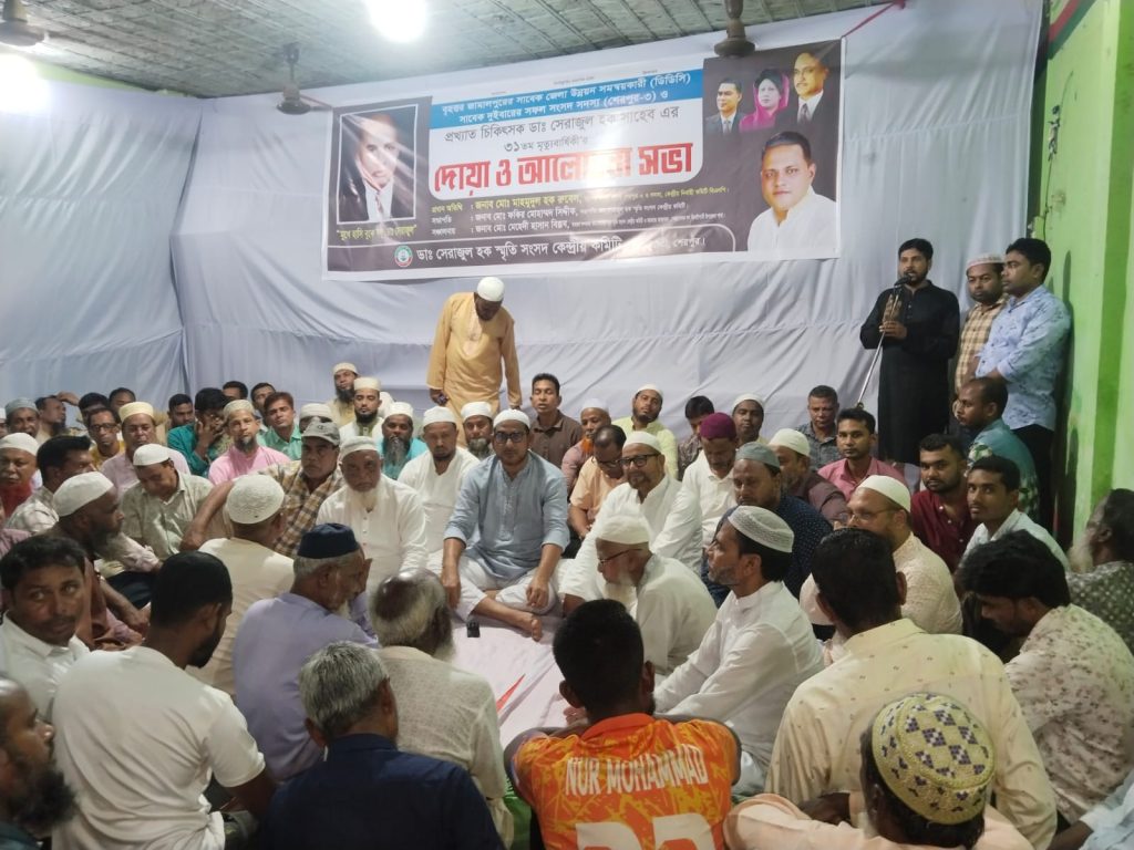 আলোচনা সভা শেষে প্রয়াত ডাঃ সেরাজুল হকের আত্মার মাগফেরাত কামনা করে বিশেষ মোনাজাত অনুষ্ঠিত হয়।