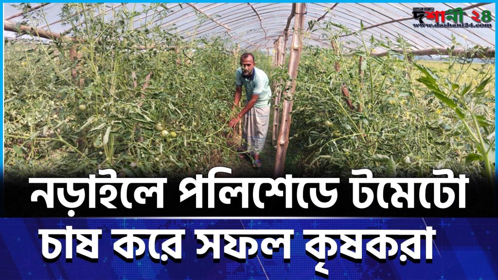 ক্লাইমেট স্মার্ট এগ্রিকালচার এন্ড ওয়াটার ম্যানেজম্যান্ট প্রকল্প (ডিএই অংশ) নড়াইল সদর কৃষি সম্প্রসারণ অধিদপ্তরের বাস্তবায়নে পলিশেডে গ্রীষ্মকালীন বারি-৮ জাতের টমেটো চাষ করেছেন ওই এলাকার কৃষকরা।