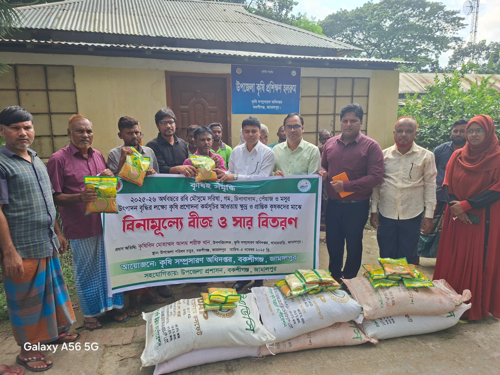 রাশেদুল ইসলাম রনিঃ জামালপুরের বকশীগঞ্জ উপজেলায় ২০২৫-২৬ অর্থবছরের রবি মৌসুমে সরিষা, গম, চীনাবাদাম, পেঁয়াজ ও মসুর উৎপাদন বৃদ্ধির লক্ষ্যে ক্ষুদ্র ও প্রান্তিক কৃষকদের মাঝে বিনামূল্যে বীজ ও সার বিতরণ করা হয়েছে।বুধবার (৫ নভেম্বর) সম্প্রসারণ অধিদপ্তরের আয়োজনে এবং উপজেলা প্রশাসনের সহযোগিতায় সকালে উপজেলা কৃষি কার্যালয়ের সামনে এ বিতরণ কার্যক্রমের উদ্বোধন করেন জামালপুর কৃষি সম্প্রসারণ অধিদপ্তরের উপপরিচালক (ডিডি) কৃষিবিদ মোহাম্মদ আলম শরীফ খান।