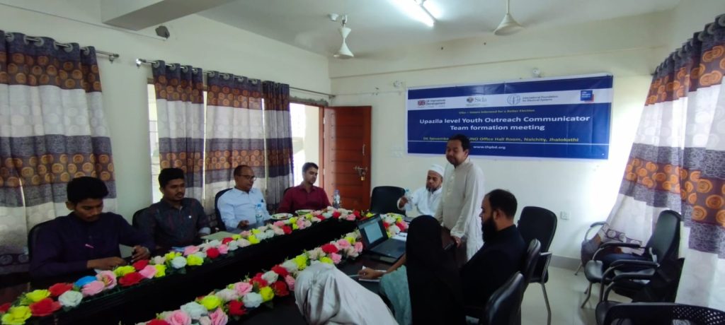আমির হোসেন: ভালো নির্বাচনের জন্য ভোটারদের তথ্য “উপজিলা লেভেল ইউথ আউটরিচ কমিউনিকেইটার টিম ফরমেশন মিটিং” নলছিটি উপজেলা নির্বাহী অফিসারের সভা কক্ষে অনুষ্ঠিত হয়। বৃহস্পতিবার (৬ নভেম্বর) সকাল ১১ টায় আয়োজিত অনুষ্ঠানে সভাপতিত্ব করেন সুজন- সুশাসনের জন্য নাগরিক নলছিটি উপজেলা কমিটির সভাপতি ও পিএফজি নলছিটি উপজেলা কমিটির কোঅডিনেটর মো: খলিলুর রহমান মৃধা। সভায় প্রধান অতিথির বক্তব্য রাখেন দি হাঙ্গার প্রোজেক্ট বাংলাদেশ বরিশাল অঞ্চলের কর্মসূচি বাস্তবায়ন মো: হাদি উজ্জামান। বিশেষ অতিথির বক্তব্য রাখেন নলছিটি প্রেস ক্লাবের সহ সভাপতি মো: শাহাদাত হোসেন মনু, সুজন নলছিটি উপজেলা কমিটির সাধারণ সম্পাদক মো:আমির হোসেন,দি হাঙ্গার প্রোজেক্ট বাংলাদেশ ঝালকাঠি জেলা সমন্বয়ক মো: জাকির হোসেন, ইয়ুথ এন্ডিং হাঙ্গার ঝালকাঠির যুম্ম সমন্বয়ক সাথী আক্তার, ইয়ুথ নলছিটি উপজেলা কোঅডিনেটর মো:ইমরান হোসেন সহ নলছিটি উপজেলার ইয়ুথ লিডার বৃন্দ। সভায় অবাধ সুষ্ঠু নিরপেক্ষ নির্বাচন বাস্তবায়নের লক্ষ্যে ইয়ুথ লিডার টিমকে উপজেলার ১০ টি ইউনিয়ন ও ১ টি পৌরসভায় ভোটার সচেতনতার লক্ষে উঠান বৈঠক অনুষ্ঠানের সিদ্ধান্ত গৃহীত হয়।