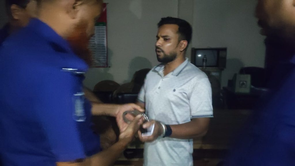 ওয়ারিশন সনদপত্র নিতে এসে পৌর নির্বাহী কর্মকর্তাসহ কর্মকর্তা-কর্মচারীদের ভয়ভীতি ও হুমকি দিয়ে তা নিয়ে যাওয়ার পর আবারো লোকজন নিয়ে এসে মারধরের চেষ্টাকালে আটক এক বখাটে যুবককে পুলিশে সোপর্দ করা হয়েছে। বৃহস্পতিবার (০৬ নভেম্বর) বিকেলে চাঁপাইনবাবগঞ্জ পৌরসভায় এ ঘটনা ঘটে। এসময় ওই যুবককে আটক করে পুলিশে সোপর্দ করেছে পৌরসভার কর্মচারী ও নিরাপত্তা রক্ষীরা।