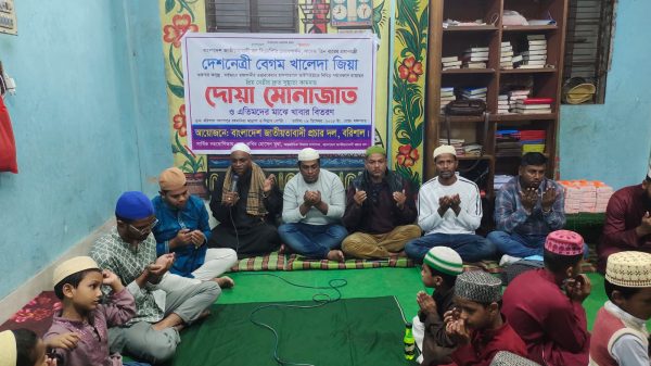 এম কে কামরুল ইসলাম বরিশাল বিএনপি চেয়ারপারসন ও সাবেক প্রধানমন্ত্রী বেগম খালেদা জিয়ার রোগমুক্তি কামনায় বরিশালে প্রচার দলের দোয়া মোনাজাত অনুষ্ঠিত হয়েছে। মঙ্গলবার দুপুরে বরিশাল নগরীর পলাশপুর রহমানিয়া দীনিয়া মাদ্রাসা