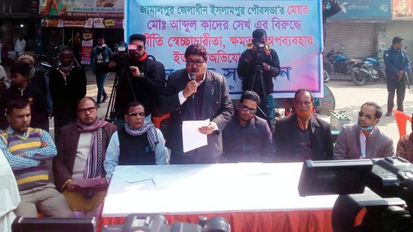 ইসলামপুর (জামালপুর) প্রতিনিধি : জামালপুরের ইসলামপুর পৌরসভার মেয়র আঃ কাদের সেখের বিরুদ্ধে দূর্নীতি, স্বেচ্ছাচারিতা, ক্ষমতা অপব্যবহারের অভিযোগে সংবাদ সম্মেলন করেছেন পৌরসভার কাউন্সিলররা। রবিবার (৮জানুয়ারী) ১১জন কাউন্সিলর থানা মোড় বটতলা চত্বরে