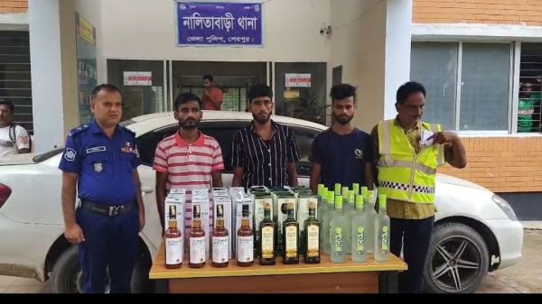 তানিম আহমেদ, নালিতাবাড়ী (শেরপুর) প্রতিনিধি: শেরপুরের নালিতাবাড়ী উপজেলার কাকরকান্দি ইউনিয়নের বরুয়াজানী গ্রামে বিশেষ অভিযানে প্রাইভেট কার ও ৪৬ বোতল বিদেশি মদসহ ৩ জনকে আটক করেছে নালিতাবাড়ী থানা পুলিশ। থানা সূত্রে