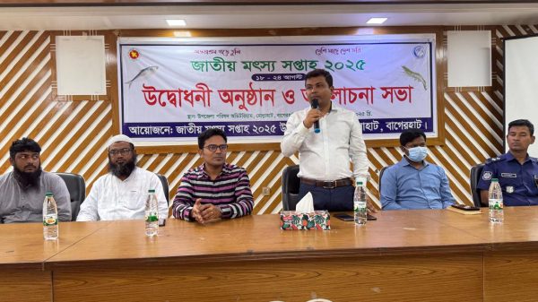 মোল্লাহাট (বাগেরহাট) প্রতিনিধি: অভয়াশ্রম গড়ে তুলি দেশি মাছে দেশ ভরি” এ স্লোগানকে সামনে রেখে সারাদেশের ন্যায় মোল্লাহাট উপজেলায় জাতীয় মৎস্য সপ্তাহ-২০২৫ অনুষ্ঠিত হয়েছে। সোমবার (১৮আগষ্ট) সকাল ১০ টায় জাতীয় মৎস্য