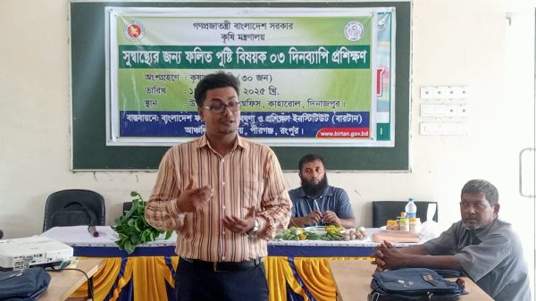 সুকুমার রায়, (দিনাজপুর) কাহারোল।। দিনাজপুরের কাহারোলে ৩ দিন ব্যাপী সুস্বাস্থ্যের জন্য ফলিত পুষ্টি বিষয়ক প্রশিক্ষণ সমাপ্ত। বাংলাদেশ ফলিত পুষ্টি গবেষণা ও প্রশিক্ষণ ইনস্টিটিউট (বারটান)আঞ্চলিক কার্যালয় পীরগন্জ রংপুর এর বাস্তবায়নে কাহারোল