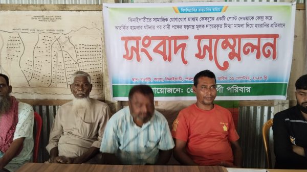 মোহাম্মদ দুদু মল্লিক,শেরপুর : শেরপুরের ঝিনাইগাতীতে সামাজিক যোগাযোগ মাধ্যম ফেসবুকে ১টি পোস্ট দেয়াকে কেন্দ্র করে অতর্কিত হামলার ঘটনার পর বাদী পক্ষের ষড়যন্ত্রমূলক দায়েরকৃত মিথ্যা মামলা হয়রানির প্রতিবাদে সংবাদ সম্মেলন করেছে