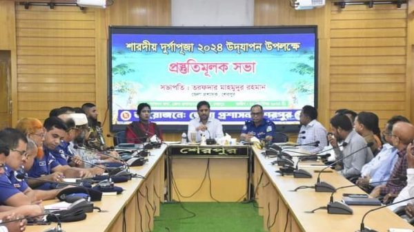 আসন্ন শারদীয় দুর্গাপূজা উদযাপন উপলক্ষে প্রস্তুতিমূলক সভা অনুষ্ঠিত মোহাম্মদ দুদু মল্লিক শেরপুর। শেরপুর জেলায় আসন্ন শারদীয় দূর্গাপূজা উৎসবমুখর পরিবেশে নির্বিঘ্নে ধর্মীয় ভাবগম্ভীর্যের মধ্য দিয়ে উদযাপন করার লক্ষ্যে প্রস্তুতিমূলক সভা
