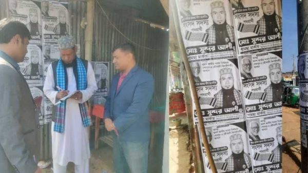 মোহাম্মদ দুদু মল্লিক শেরপুর প্রতিনিধি: শেরপুরের ঝিনাইগাতীতে নির্বাচনী আচরণবিধি লঙ্ঘন করে দেয়ালে পোস্টার লাগানোর অপরাধে ভ্রাম্যমাণ আদালতের মাধ্যমে গামছা প্রতীকের এমপি পদপ্রার্থী সুন্দর আলীকে দুই হাজার টাকা অর্থদন্ডে দন্ডিত করা হয়েছে। ২৭