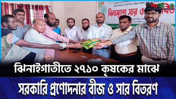মোহাম্মদ দুদু মল্লিক,শেরপুর প্রতিনিধি : কৃষি উৎপাদন বৃদ্ধি ও প্রান্তিক কৃষকের জীবনমান উন্নয়নে সরকারের প্রণোদনা কর্মসূচির আওতায় শেরপুরের ঝিনাইগাতীতে ক্ষুদ্র ও প্রান্তিক কৃষকদের মাঝে বিনামূল্যে বীজ ও সার বিতরণ করা