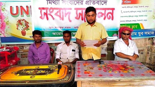মোহাম্মদ দুদু মল্লিক, শেরপুর। সীমান্তবর্তী শেরপুরের ঝিনাইগাতীতে মিথ্যা,বানোয়াট, ভিত্তিহীন ও মান হানিকর সংবাদের প্রতিবাদে সংবাদ সম্মেলন করেছে ভুক্তভোগী পরিবার। মঙ্গলবার (৩ সেপ্টম্বর) ১২ টা সময় উপজেলার বাকাকুড়া আদর্শ গ্রামে এই