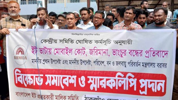 ঠাকুরগাঁও জেলা প্রতিনিধিঃ ঠাকুরগাঁওয়ে ইট ভাটায় মোবাইল কোট, জরিমানা, ভাংচুর বন্ধের প্রতিবাদে মানববন্ধন পালিত হয়। ১১ মার্চ মঙ্গলবার ঠাকুরগাঁও জেলা কালেক্টরেট চত্বরে এ মানববন্ধন ও পরে ঠাকুরগাঁও জেলা প্রশাসকের মাধ্যমে