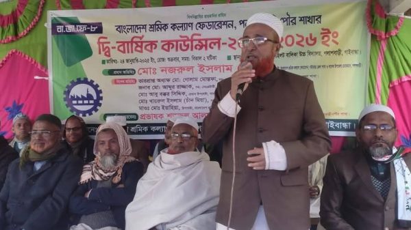 গাইবান্ধা থেকে মোঃ আবু জাফর মন্ডলঃ গাইবান্ধার পলাশবাড়ী উপজেলায় শ্রমিক কল্যান ফেডারেশনের দ্বি-বার্ষিক কাউন্সিল অনুষ্ঠিত হয়েছে। বাংলাদেশ শ্রমিক কল্যান ফেডারেশনের পলাশবাড়ী পৌর শাখার দ্বি বার্ষিক কাউন্সিল আজ ২৪ জানুয়ারি শুক্রবার