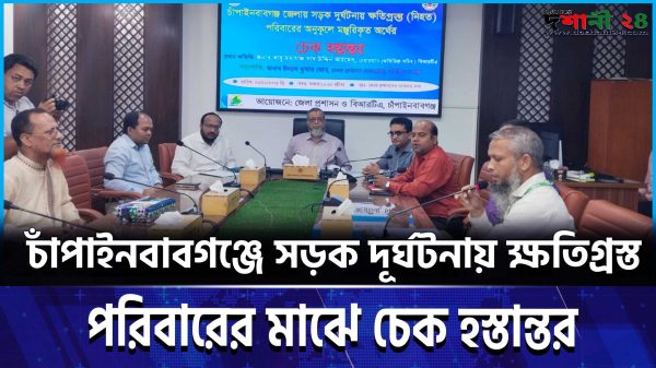 মাহিদুল ইসলাম ফরহাদ চাঁপাইনবাবগঞ্জ জেলা প্রতিনিধি চাঁপাইনবাবগঞ্জ জেলা প্রশাসন ও বিআরটিএ আয়োজনে গতকাল (২৩ অক্টোবর) বৃহস্পতি দুপুর ১২ ঘটিকায় জেলা প্রশাসক কার্যালয় কনফারেন্স রুমে সড়ক দূর্ঘটনার ক্ষতিগ্রস্ত পরিবারের চেক হস্তান্তর