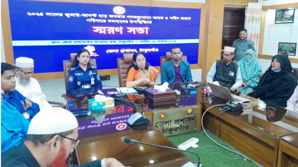 ঠাকুরগাঁও প্রতিনিধি ঃ জুলাই-আগস্টে ছাত্র-জনতার অভ্যুত্থানে আহত ও শহিদদের স্মরণে স্মরণসভা ও সাংস্কৃতিক অনুষ্ঠান হয়েছে ঠাকুরগাঁওয়ের পীরগঞ্জে। বুধবার বিকালে উপজেলা পরিষদের অডিটোরিয়ামে উপজেলা নির্বাহী অফিসার রমিজ আলমের সভাপতিত্বে অনুষ্ঠিত সভায়