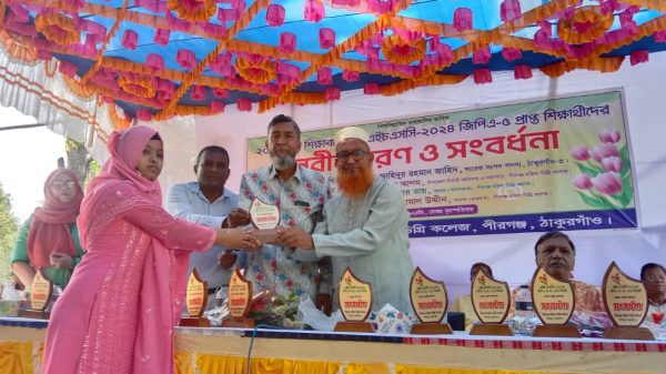 পীরগঞ্জ মহিলা কলেজে নবীন বরন ও কৃতি শিক্ষার্থীদের সংবর্ধনা পীরগঞ্জ(ঠাকুরগাঁও)প্রতিনিধিঃ ঠাকুরগাঁয়ের পীরগঞ্জ মহিলা ডিগ্রী কলেজের প্রথম বর্ষের শিক্ষার্থীদের নবীণ বরণ ও ২০২৪ সালে এইচএসসি পরীক্ষায় জিপিএ-৫ প্রাপ্ত ছাত্রীদের সংবর্ধনা সভা