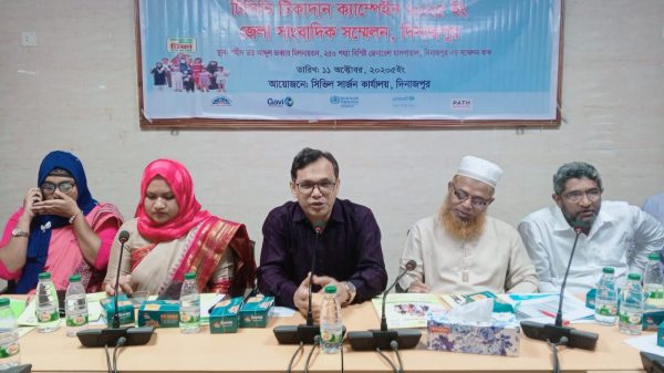 নিজস্ব প্রতিবেদক মোহাঃ ফজলুর রহমান: দিনাজপুরে টিসিভি টিকাদান ক্যাম্পেইন উপলক্ষ্যে সিভিল সার্জন কার্যালয় এর আয়োজনে-১১ অক্টোবর-২০২৫ শনিবার সকাল ১০টায়,দিনাজপুর সদর হাসপাতালের সম্মেলন কক্ষে দিনাজপুর জেলা সংবাদ কর্মীদের নিয়ে সংবাদ সম্মেলনে