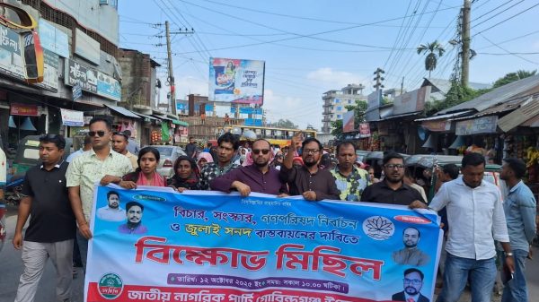 গাইবান্ধা থেকে মোঃ আবু জাফর মন্ডলঃ গণহত্যার বিচার, রাষ্ট্র সংস্কার, জুলাই সনদ ও গণপরিষদ নির্বাচন বাস্তবায়ন ৪ দফা দাবীতে গাইবান্ধার গোবিন্দগঞ্জে বিক্ষোভ মিছিল করেছে জাতীয় নাগরিক পার্টি। রবিবার (১২ অক্টোবর)