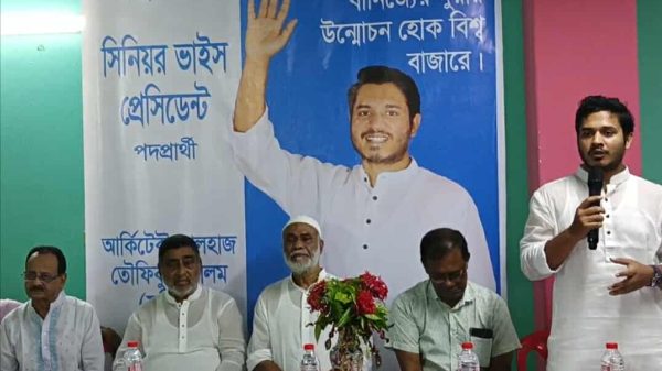 মাহবুবুজ্জামান সেতু, নওগাঁ প্রতিনিধি: নওগাঁ চেম্বার অব কমার্স অ্যান্ড ইন্ডাস্ট্রির আসন্ন নির্বাচনে সিনিয়র ভাইস প্রেসিডেন্ট পদপ্রার্থী আর্কিটেক্ট ও সাহানাবাগ সিটির সত্ত্বাধিকারী আলহাজ্ব তৌফিকুল আলম সুজিতের সঙ্গে স্থানীয় ব্যবসায়ীদের এক মতবিনিময়