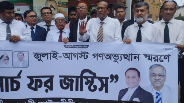 নড়াইল প্রতিনিধি জুলাই আগস্ট “র্মাচ ফর জাস্টিস কর্মসূচির অংশ হিসেবে নড়াইলে পদযাত্রা ও সমাবেশ করেছে জাতীয়তাবাদী আইনজীবী ফোরাম । ৪ জুলাই সোমবার দুপুরে নড়াইল জজ র্কোট অঙ্গনে এই র্কমসুচি পালিত