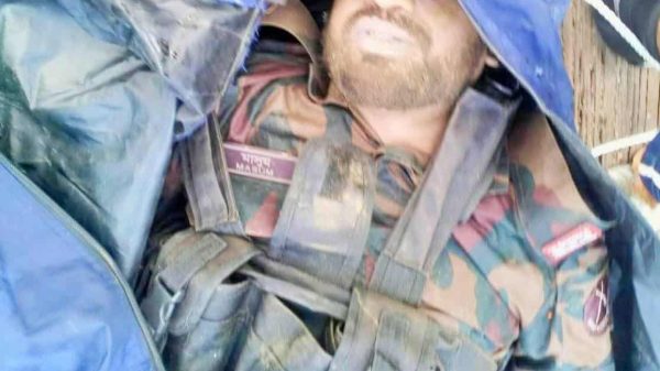 সিলেট প্রতিনিধি : সিলেটের সীমান্তে চোরাকারবারি দমনে অভিযান পরিচালনার সময় ইছামতি নদীতে পানিতে ডুবে নিখোঁজ হওয়ার ২৪ ঘন্টা পর বর্ডার গার্ড বাংলাদেশের (বিজিবি) সিপাহী মোঃ মাসুম বিল্লাহর মরদেহ উদ্ধার করা