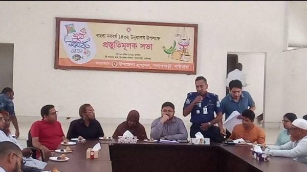 গাইবান্ধা থেকে মোঃ আবু জাফর মন্ডলঃ গাইবান্ধার পলাশবাড়ীতে পহেলা বৈশাখ ১৪৩২ উদযাপন উপলক্ষ্যে প্রস্তুতি সভা অনুষ্ঠিত হয়েছে। পহেলা বৈশাখ ১৪৩২ বাংলা নববর্ষ বাঙালি জাতির প্রাণের উৎসব-কে কেন্দ্র করে উপজেলা প্রশাসনের