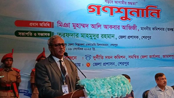 মোহাম্মদ দুদু মল্লিক,শেরপুর : সামাজিক সচেতনতা বৃদ্ধি, সরকারি-বেসরকারি দপ্তরে সেবার মান উন্নয়ন, সেবাগ্রহীতাদের হয়রানি রোধ এবং দুর্নীতি প্রতিরোধের লক্ষ্যে শেরপুরে অনুষ্ঠিত হয়েছে দিনব্যাপী দুদকের গণশুনানি। সোমবার (৮ সেপ্টেম্বর) সকালে জেলা