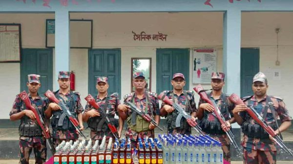 মোহাম্মদ দুদু মল্লিক,শেরপুর : শেরপুরের শ্রীবরর্দী সীমান্তবর্তী বগুলাকান্দি এলাকা থেকে আমদানি নিষিদ্ধ ভারতীয় বিভিন্ন ব্র্যান্ডের ২২১ বোতল বিদেশী মদ উদ্ধার করেছে বিজিবি। বুধবার (১৭ সেপ্টেম্বর) সকালে উপজেলার কর্ণঝোড়া সীমান্ত ফাঁড়ি