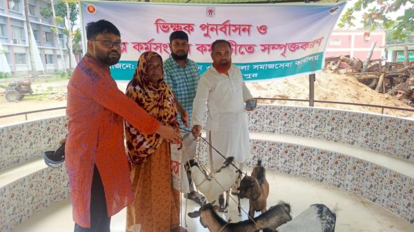 তানিম আহমেদ, নালিতাবাড়ী (শেরপুর) প্রতিনিধি: শেরপুরের নালিতাবাড়ীতে সমাজসেবা অধিদফতরের ভিক্ষুক পুনর্বাসন ও বিকল্প কর্মসংস্থান কর্মসূচির আওতায় ভিক্ষুক সাজেদা বেগমকে স্বাবলম্বী করার লক্ষ্যে চারটি ছাগল প্রদান করেন সমাজসেবা অধিদফতর । এ