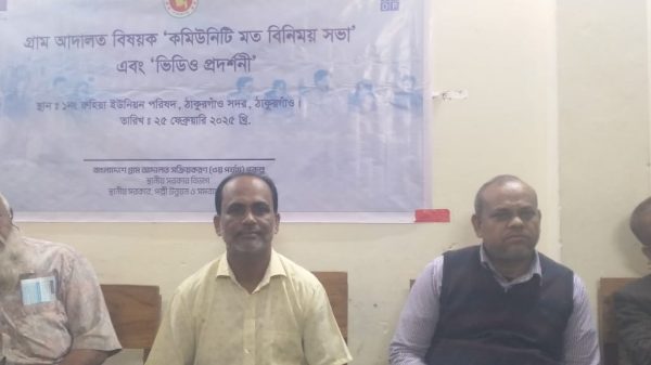 ফারুক হোসেন ঠাকুরগাঁওঃ ঠাকুরগাঁওয়ে রুহিয়ায় ১নং রুহিয়া ইউনিয়ন পরিষদে হলরুমে গ্রাম আদালত বিষয়ক মত বিনিময় সভা ও ভিডিও প্রদর্শনী অনুষ্ঠিত হয়েছে। ২৫শে ফেব্রুয়ারি মঙ্গলবার রুহিয়া ইউনিয়ন পরিষদ হলরুমে এ সভা