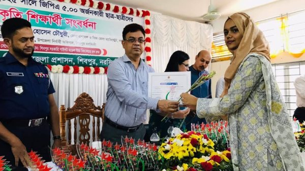 বশির আহমেদ নরসিংদী জেলা প্রতিনিধি: নরসিংদীর শিবপুর উপজেলা প্রশাসনের আয়োজনে ২০২৫ সালে উপজেলায় জিপিএ- ৫.০০ অর্জনকারী কৃতি শিক্ষার্থীদের সংবর্ধনা দেওয়া হয়েছে। রবিবার ( ০৭ সেপ্টেম্বর) দুপুরে শিবপুর সরকারি পাইলট মডেল