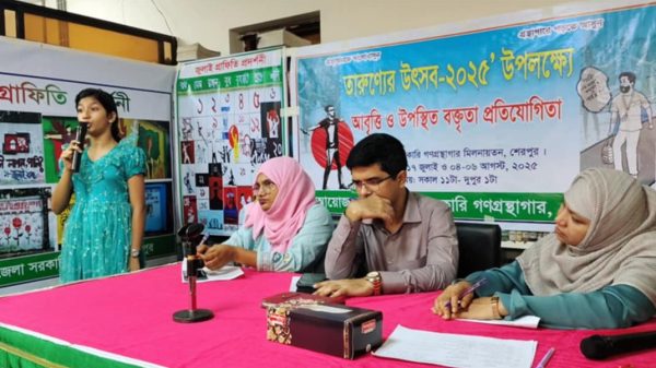 মোহাম্মদ দুদু মল্লিক,শেরপুর: শেরপুর জেলা সরকারি গণগ্রন্থাগার কর্তৃক আয়োজিত তারুণ্যের উৎসব-২০২৫ উপলক্ষে জুলাই বিপ্লব স্মরণে শিশুদের কবিতা আবৃত্তি অনুষ্ঠিত হয়েছে। ১৫ জুলাই মঙ্গলবার সকালে জেলা সরকারি গণগ্রন্থাগার মিলনায়তনে তারুণ্যের উৎসব ২০২৫