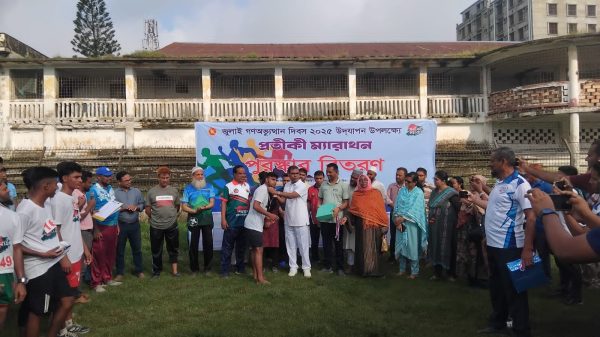মোঃ লিটন হোসেন ঝিনাইদহ প্রতিনিধিঃ জুলাই গণঅভ্যুত্থান দিবস উদযাপন উপলক্ষে ঝিনাইদহে প্রতীকী ম্যারাথন প্রতিযোগিতা অনুষ্ঠিত হয়েছ। শুক্রবার (১৮জুলাই) সকাল ৭ টায় ঝিনাইদহ জেলা প্রশাসকের কার্যালয়ের সামনে থেকে শুরু হয়ে বীর