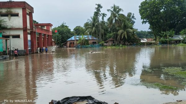 এ.এস আব্দুস সামাদ ঝিনাইদহ প্রতিনিধিঃ টানা বর্ষণে পানিতে ডুবে গেছে ঝিনাইদহ জেলার শৈলকুপা থানার মির্জাপুর ইউনিয়নের আলমডাঙ্গা বাজার সংলগ্ন একটি প্রাথমিক বিদ্যালয়ের মাঠ। এতে করে বিপাকে পড়েছে ওই স্কুলের শিক্ষার্থীরা।