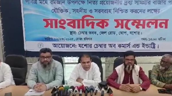 মালিকুজ্জামান কাকা পবিত্র রমজান মাসে নিত্যপ্রয়োজনীয় দ্রব্যসামগ্রীর বাজার পরিস্থিতি সহনীয় রাখতে এবং সরবরাহ নিশ্চিত করতে বাজার মনিটরিং কমিটি গঠন করেছে যশোর চেম্বার অব কমার্স অ্যান্ড ইন্ডাস্ট্রি। শহরের দড়াটানায় চেম্বার ভবনে