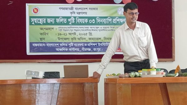 সুকুমার রায়, (দিনাজপুর) কাহারোল।। দিনাজপুরের কাহারোলে ৩ দিন ব্যাপী সুস্বাস্থ্যের জন্য ফলিত পুষ্টি বিষয়ক প্রশিক্ষণ শুরু। বাংলাদেশ ফলিত পুষ্টি গবেষণা ও প্রশিক্ষণ ইনস্টিটিউট (বারটান)আঞ্চলিক কার্যালয় পীরগন্জ রংপুর এর বাস্তবায়নে কাহারোল