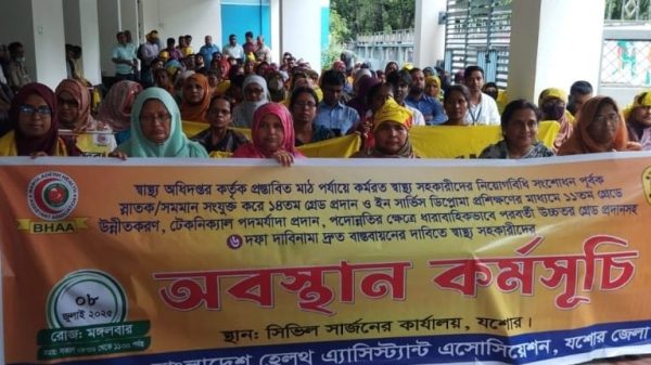 মালিকুজ্জামান কাকাঃ চাকরিতে ১৪তম গ্রেড ও ‘টেকনিক্যাল পদমর্যাদা’ দেওয়াসহ ছয় দাবিতে যশোরে অবস্থান কর্মসূচি পালন করেছেন স্বাস্থ্য সহকারীরা। মঙ্গলবার সকাল ৮ টা থেকে বেলা ১১ টা পর্যন্ত জেলা সিভিল সার্জনের